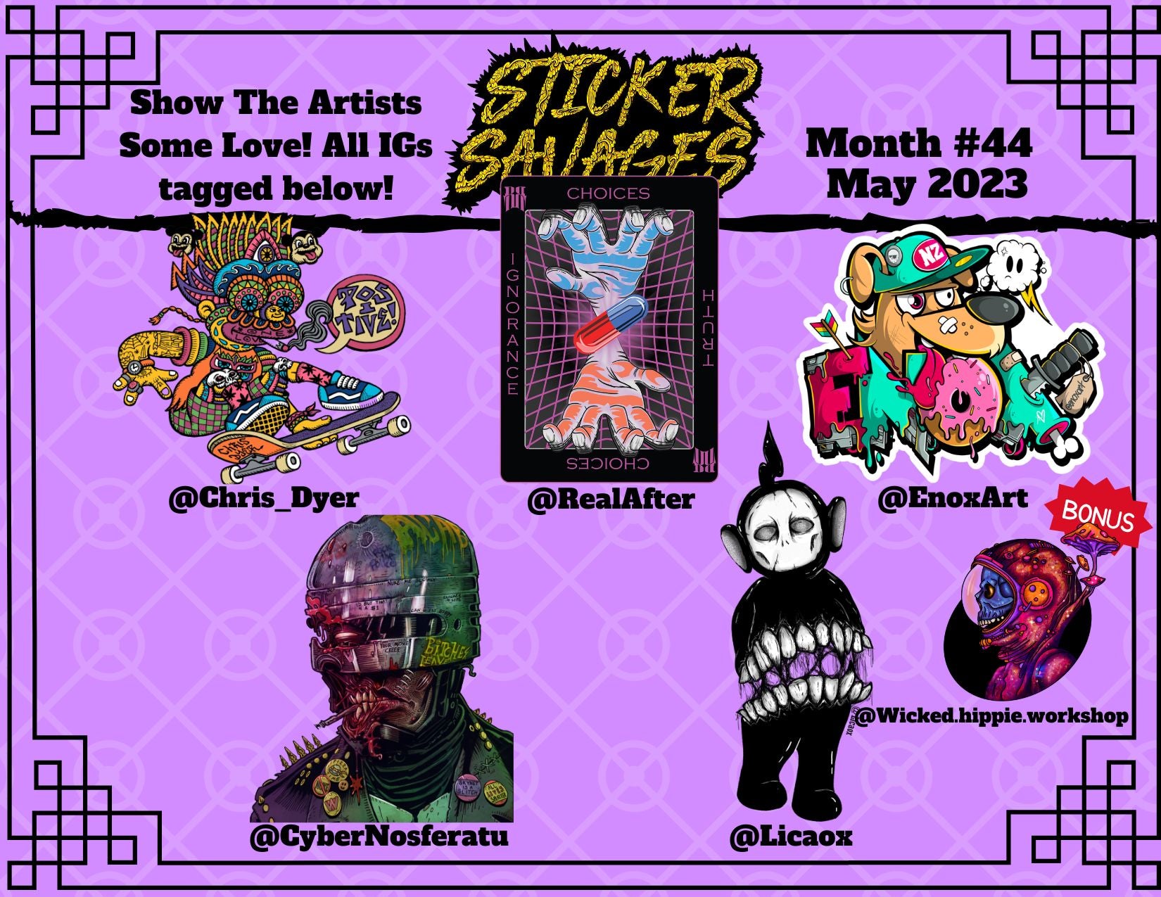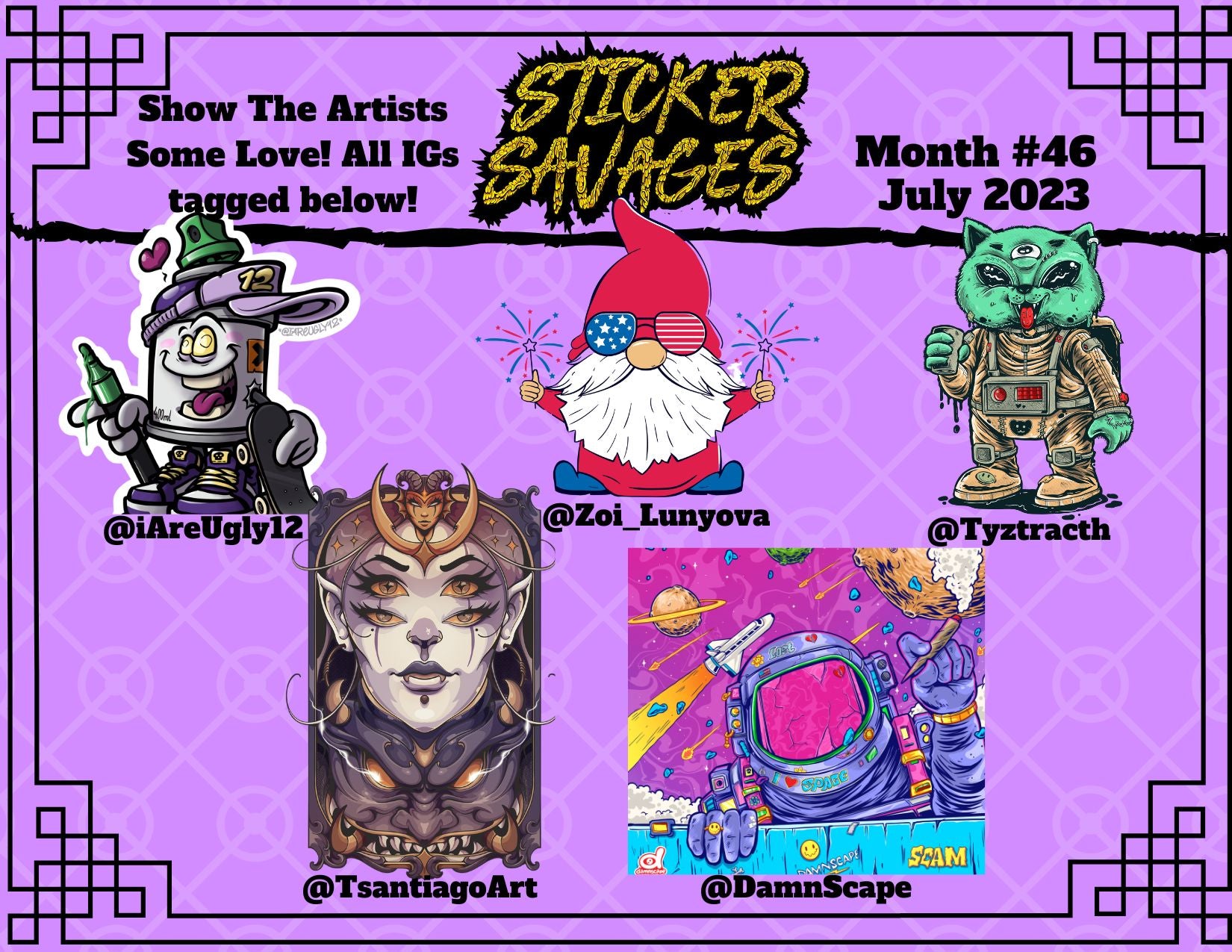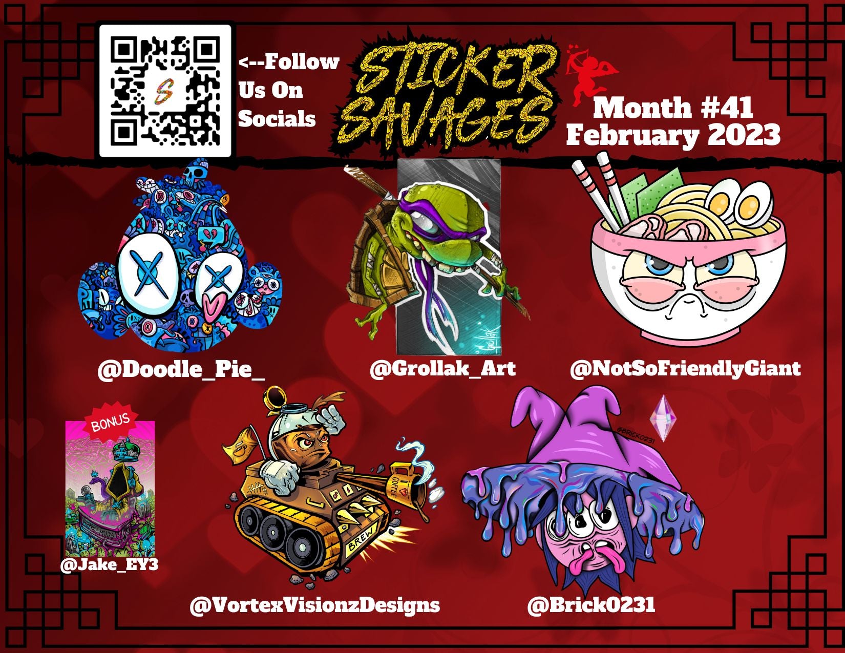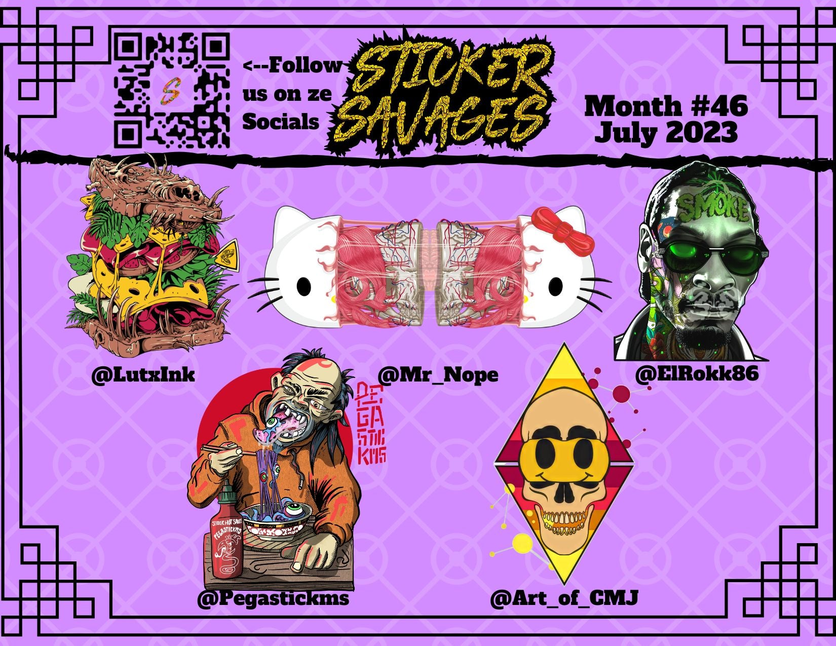 awesome stickers this month, from a futuristic warrior to some doodle type art from enox.