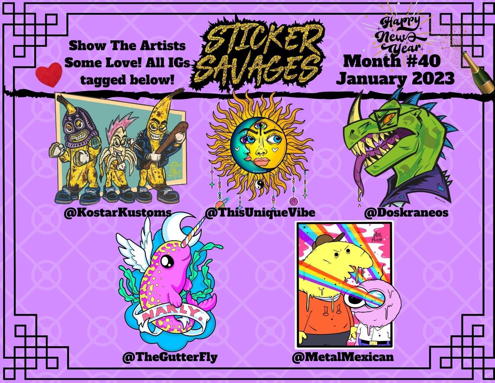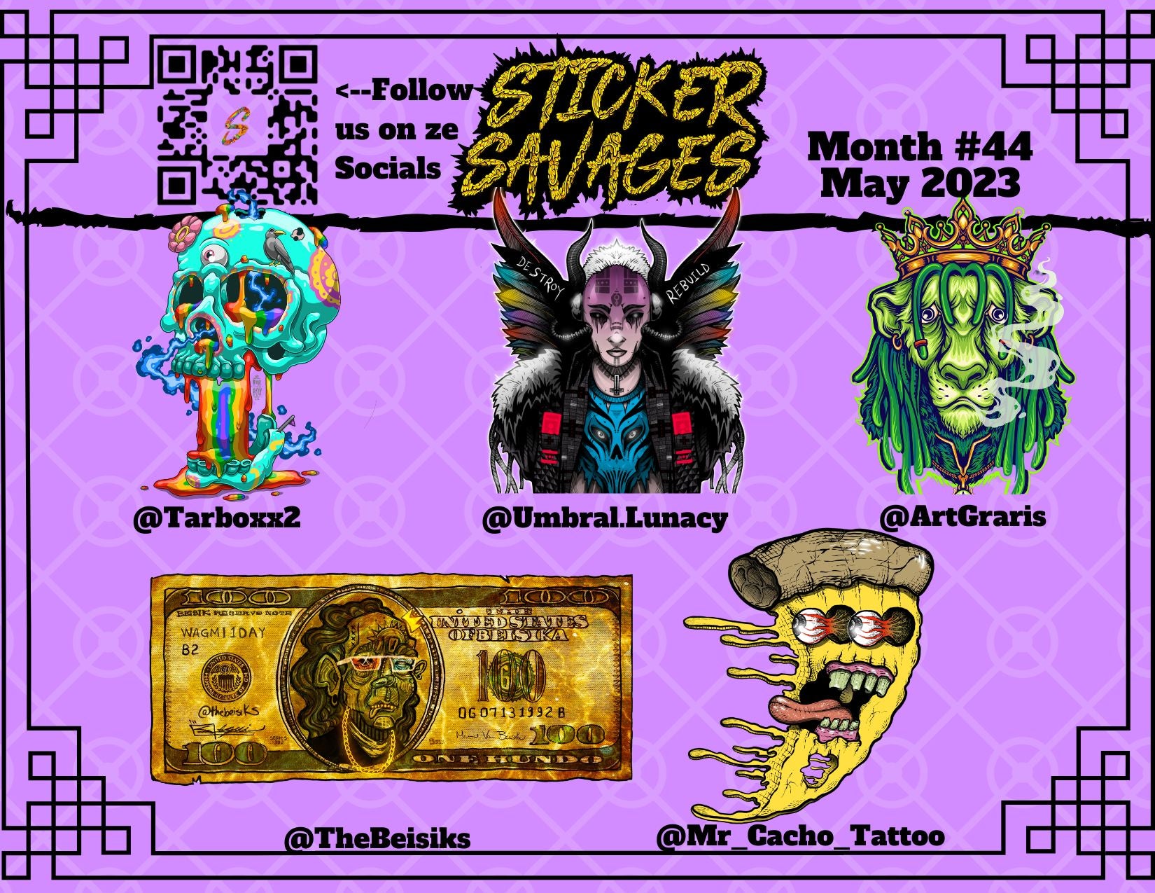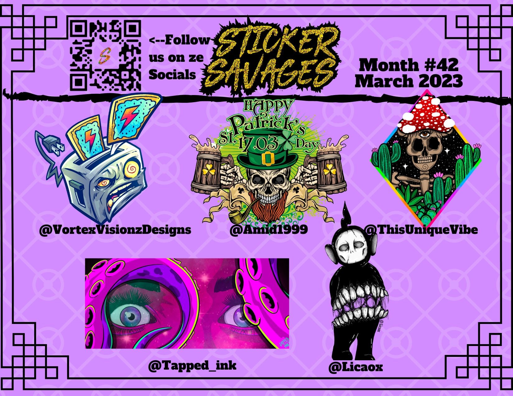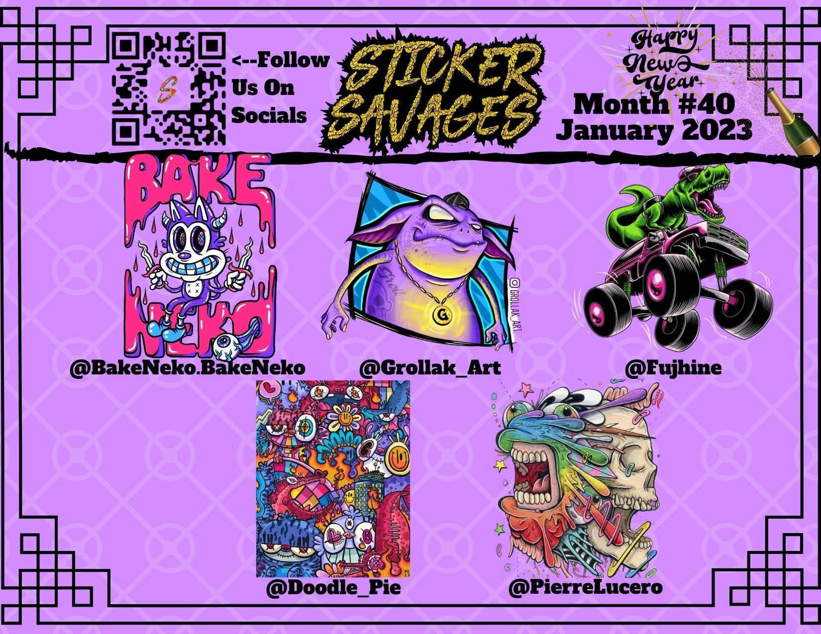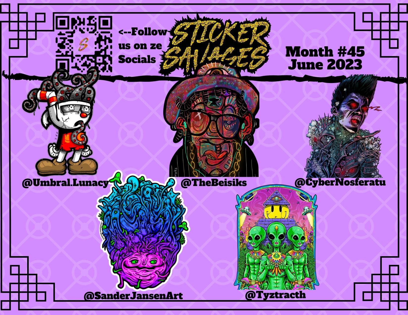 awesome stickers this month, from a futuristic warrior to some doodle type art from enox.