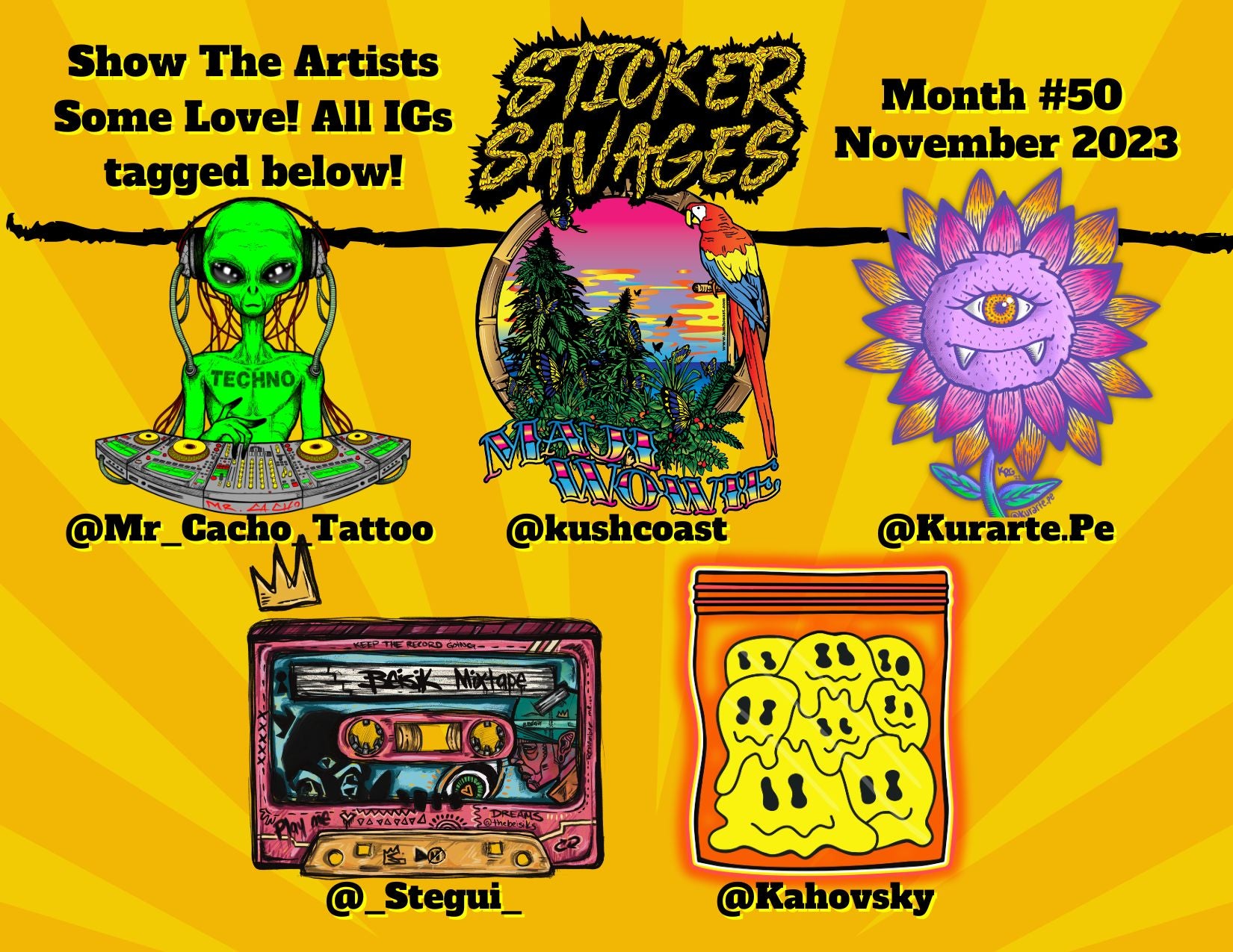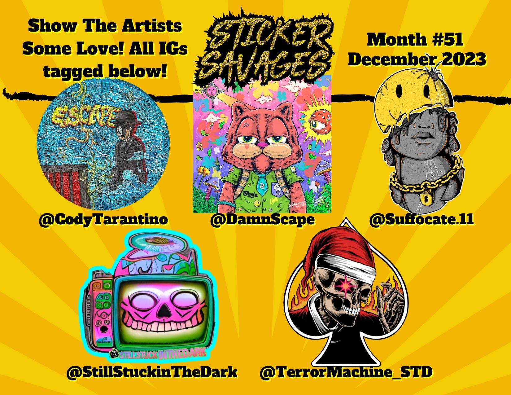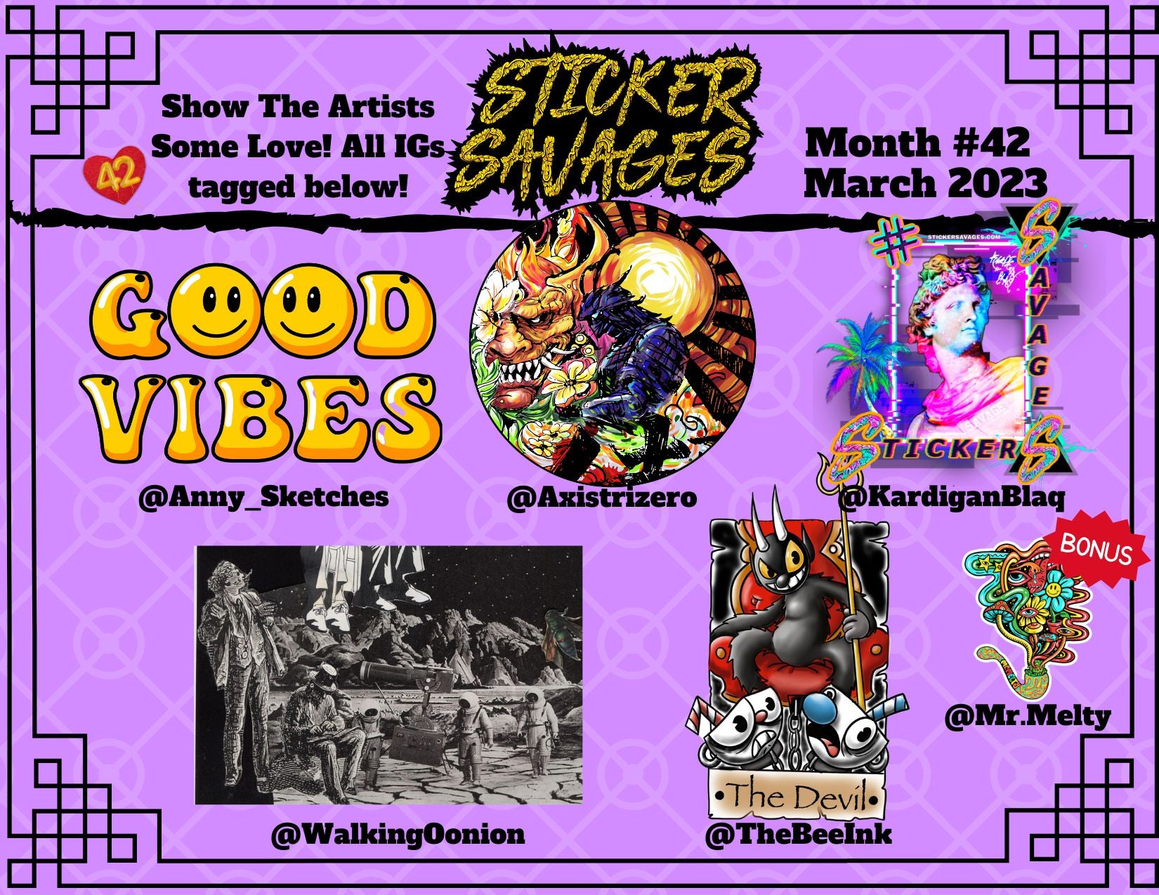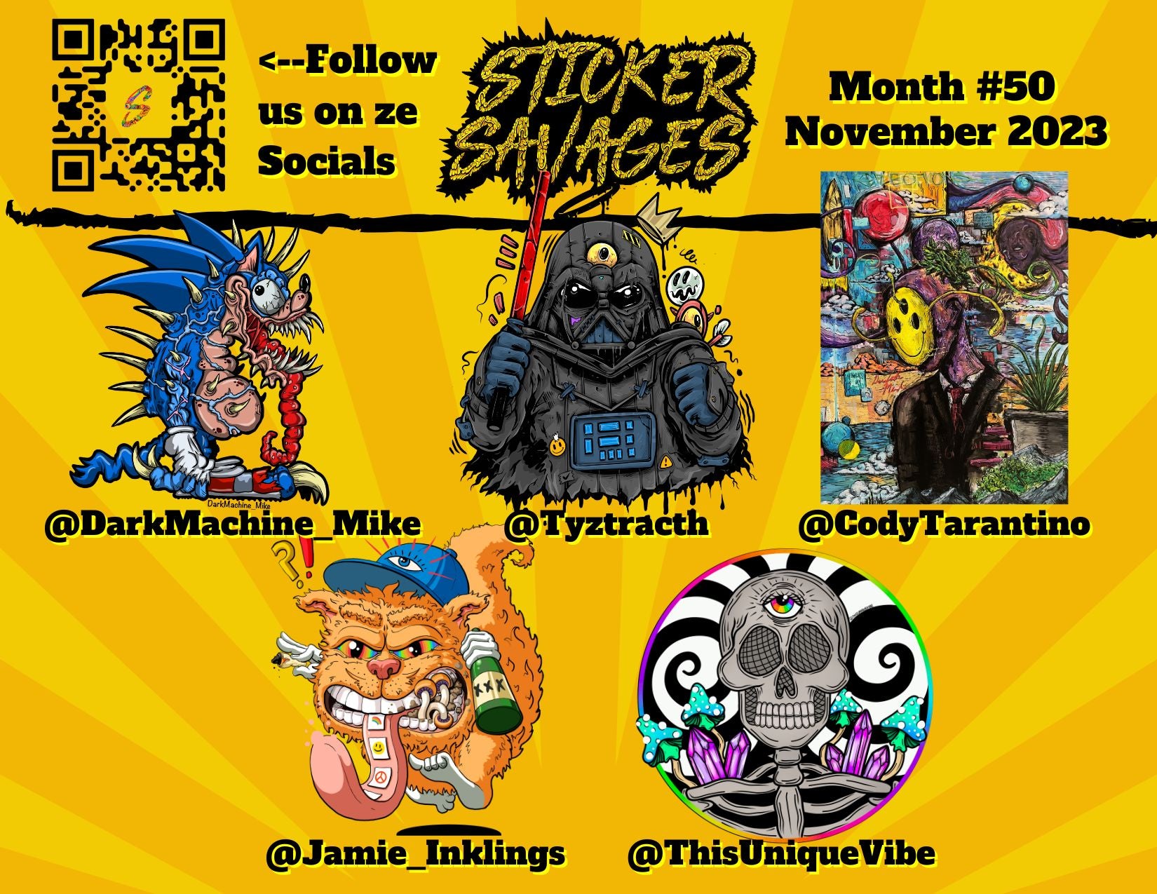 awesome stickers this month, from a futuristic warrior to some doodle type art from enox.
