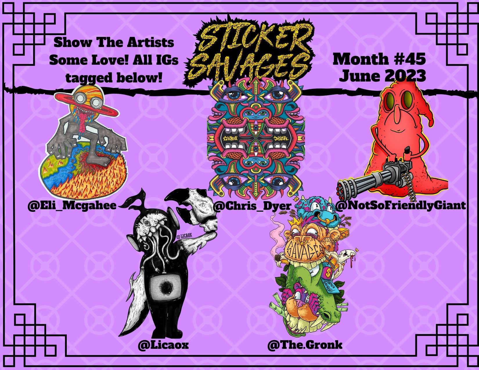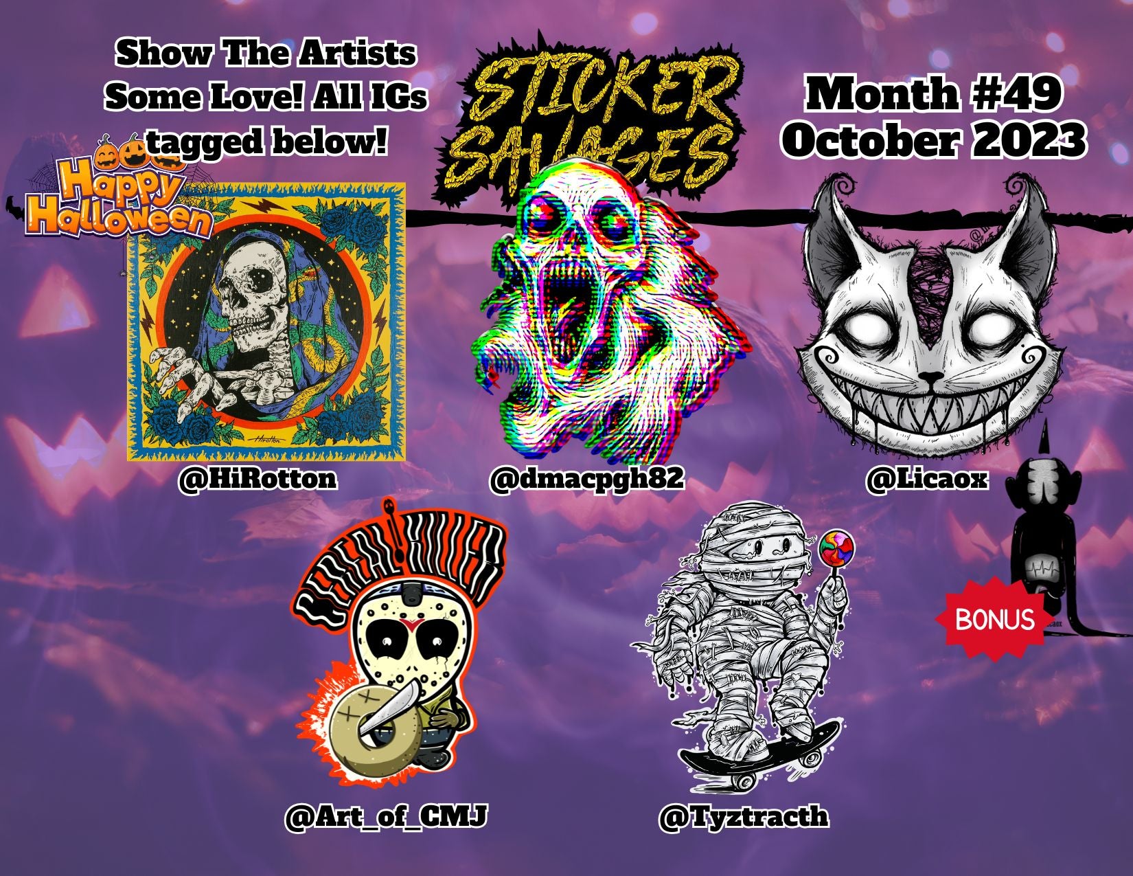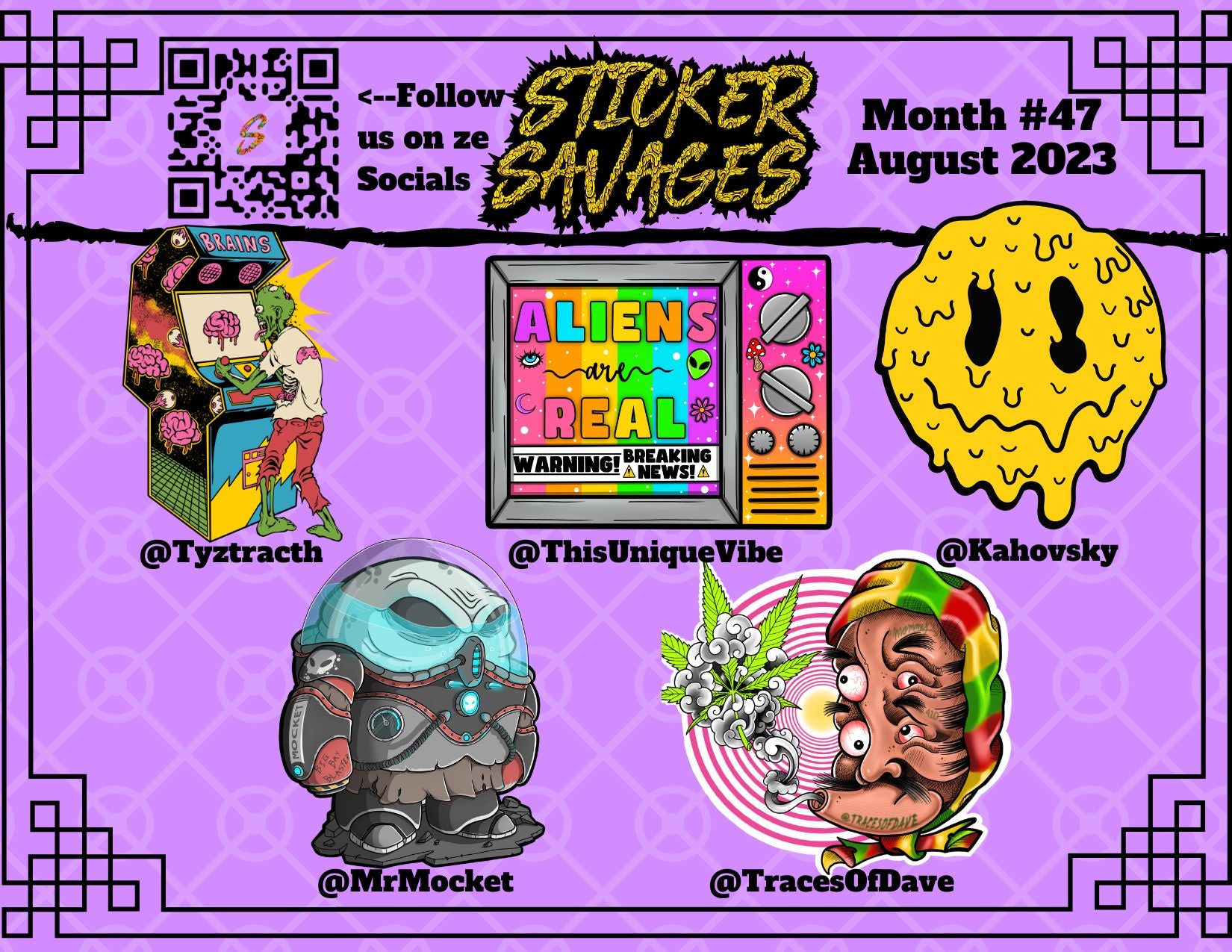 cyclops ball cyborg, spray can triangle man and a awesome king skeleton sticker in August.