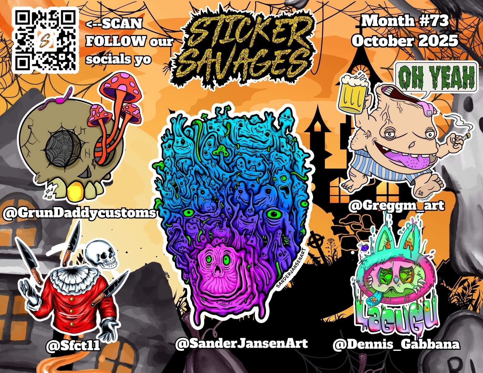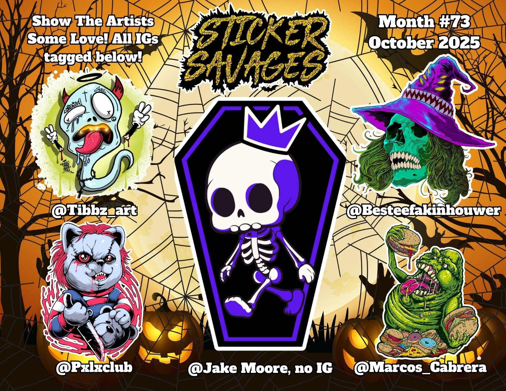 features a holographic eye sticker, gold toothed skull and other halloween stickers!